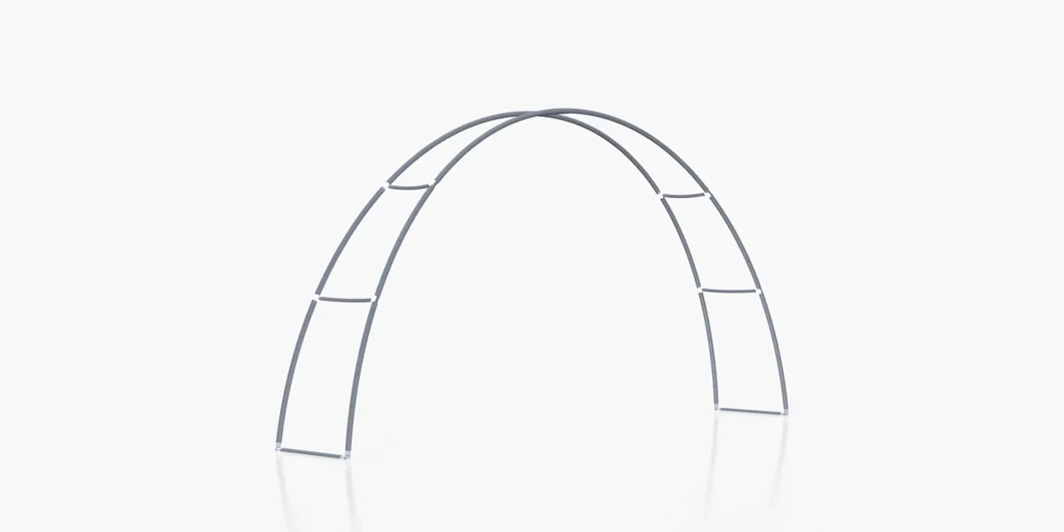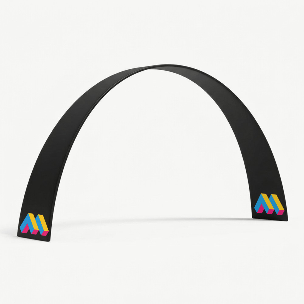 The textile promotional arch is a modern and eye-catching solution that stands out even from a distance. It is идеально suited as an entrance for events, a space divider, a decorative element, or an effective backdrop at trade shows.
