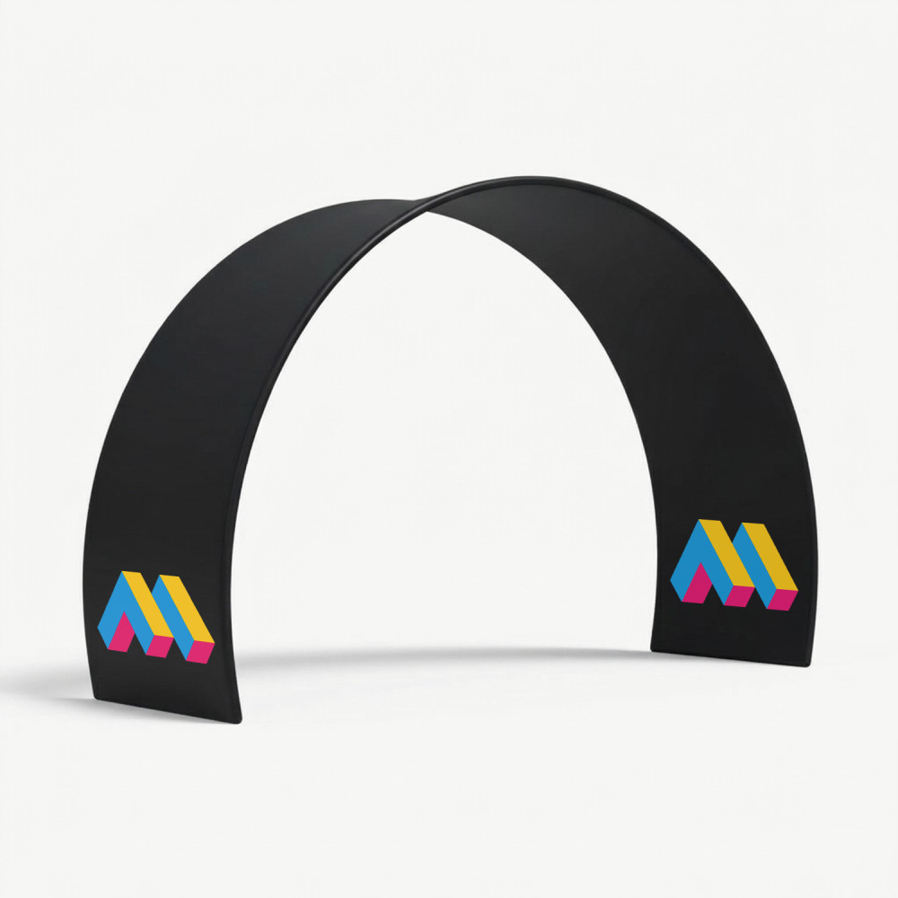 The textile promotional arch is a modern and eye-catching solution that stands out even from a distance. It is идеально suited as an entrance for events, a space divider, a decorative element, or an effective backdrop at trade shows.