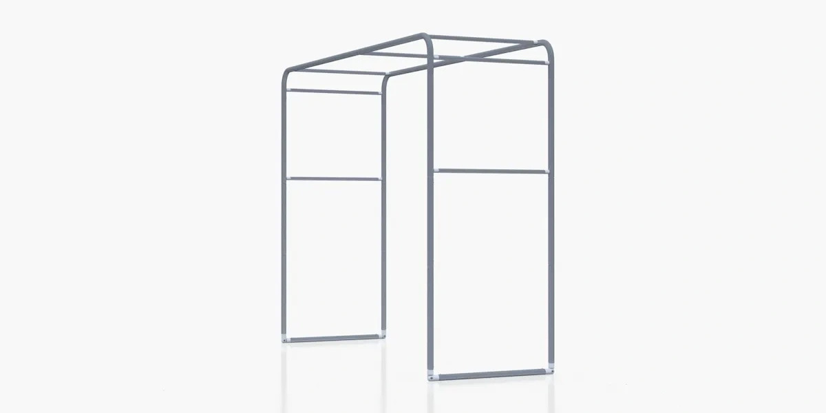 The promotional arch consists of a lightweight yet stable aluminium frame, covered with printed fabric that is secured with a zipper.